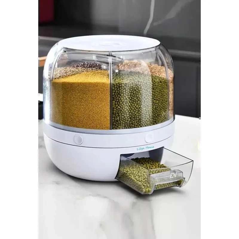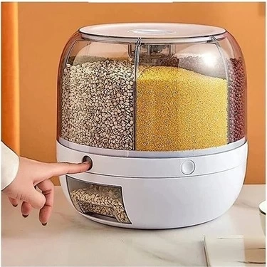 Mutfakta düzeni sevenler için tasarlanan 360° Dönebilen Kuru Gıda ve Bakliyat Organizeri, 6 bölmeli yapısıyla farklı kuru gıdaları tek kapta düzenli ve hijyenik şekilde saklama imkânı sunar. 360 derece dönebilen tasarımı sayesinde istediğiniz bölmeye kolayca ulaşabilir, şeffaf gövdesiyle içerideki miktarı zahmetsizce görebilirsiniz.