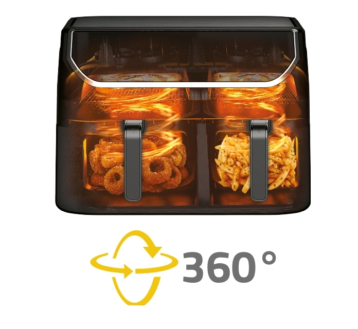 Çift hazne kapasitesi: 5,5 L + 3,5 L — çift hazneyle farklı yiyecekleri aynı anda hazırlama imkânı.
