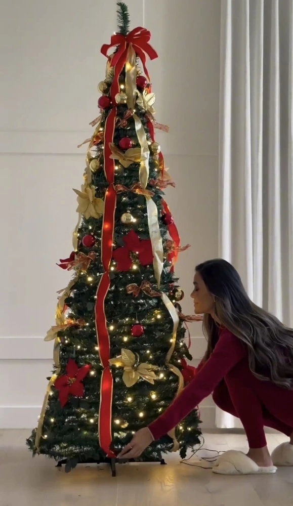“Keşke ağacı süslemekle saatler harcamak zorunda olmasam…” diyorsan, bu Açılır Kapanır Işıklı ve Süslü Yılbaşı Ağacı tam sana göre! ?