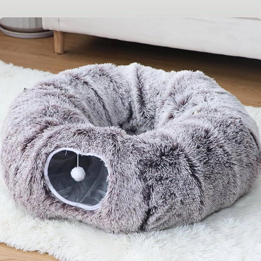 Yuvalı Peluş Kedi Yatağı – Sıcak, Konforlu ve Güvenli Alan